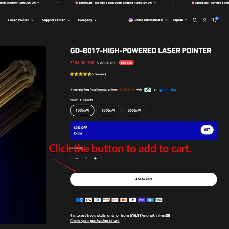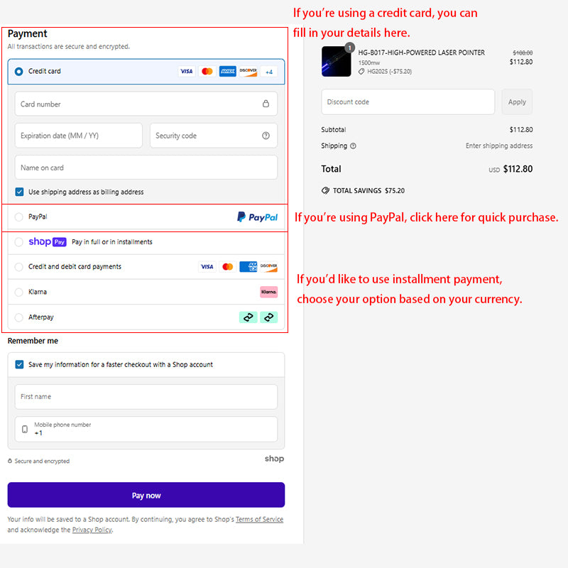 We partner with leading banks and e‑commerce payment specialists. Currently, we support Klarna, Afterpay, PayPal Installments, as well as credit/debit card and e‑wallet payments. Please see the details below for more information.